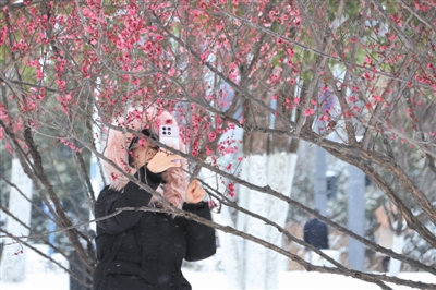 市场星报、安徽财经网(www.ahcaijing.com)、掌中安徽讯(记者 张良弓/图)1月20日,大雪让合肥天鹅湖北岸边刚刚绽放的樱花看起来别有韵味,路过的市民也纷纷举起手机拍照留念。