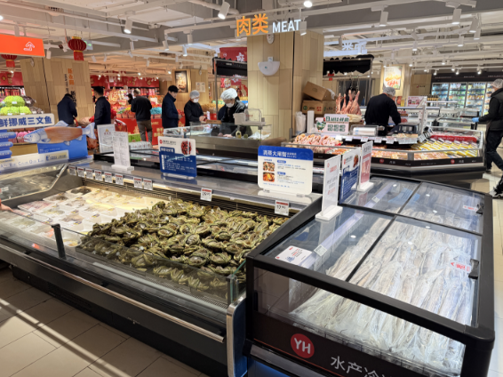 肉禽海产品质升级,汇集潮汕牛肉系列、进口牛腩块、腌制牛排、土猪肉、无抗鸡,以及澳洲、新西兰进口牛肉。水产区亮点纷呈,除了明虾、罗氏虾、大闸蟹、三文鱼系列,更引进了帝王蟹、波士顿龙虾、面包蟹、珍宝蟹等高端海鲜,为团圆家宴增添奢华之选。