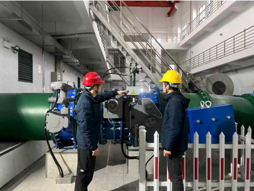 作业过程中,工作人员严格执行“安全第一、规范操作、精准把控”原则,依次开展机组状态检测、平稳停机、阀门关闭与数据监测等环节。通过手动模式精准操控主控阀门,并持续监测管道压力与水位变化,确保阀门关闭严密、系统稳定。整个流程分工明确、协同高效,较原计划提前完成,为后续施工留出宝贵时间。