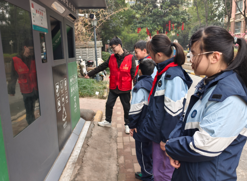 活动伊始孩子们齐聚活动室,由志愿者简单介绍四大类垃圾的分类标准,通过“废电池属于哪类垃圾”“外卖餐盒怎么分”等简单问答,解答分类疑问,帮助孩子们快速掌握基础分类知识。随后,身穿红马甲的志愿者带领“小小宣传员”们走进社区垃圾分类投放点,开启沉浸式实践教学。志愿者细致讲解垃圾桶颜色标识、投放注意事项,孩子们踊跃尝试将模拟垃圾精准投放,稚嫩的身影成为社区里一道亮眼的绿色风景线。最后,小志愿者们分组入户,带着精心准备的宣传手册,挨家挨户耐心讲解垃圾分类的环保意义与实操技巧。“孩子学得认真,我们也跟着掌握了分类窍门,这样的活动太有意义了!”居民王奶奶的点赞道出了大家的心声。