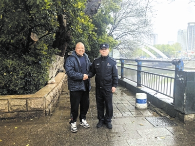 热心市民王毛旦和大通路派出所副所长孟涛合影