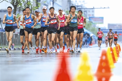 2026年4月11日,参赛运动员在竞走比赛中。当日,2026年全国竞走大奖赛暨全国竞走单项赛(第2站)在安徽省黄山市徽州区鸣枪开赛。来自全国21个省市247人报名参赛,展开速度与耐力的巅峰对决。施亚磊