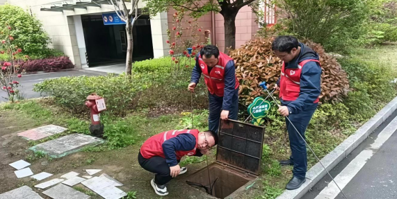 找到第一处漏点后,志愿队丝毫没有松懈,继续对剩余管网进行全覆盖排查。沿着校园外围管网,他们逐段检测、逐点核验,不放过任何一处可疑区域。当排查至学校保安亭旁的管网区域时,清晰的流水声从检查井内传出。打开井盖后,只见清水持续涌出,经现场快速检测确认为自来水泄漏。随后,志愿队使用听音杆对井周边区域进行地面听音排查,经过多轮定点核验,成功锁定第二处漏点位于检查井旁的地下管段。