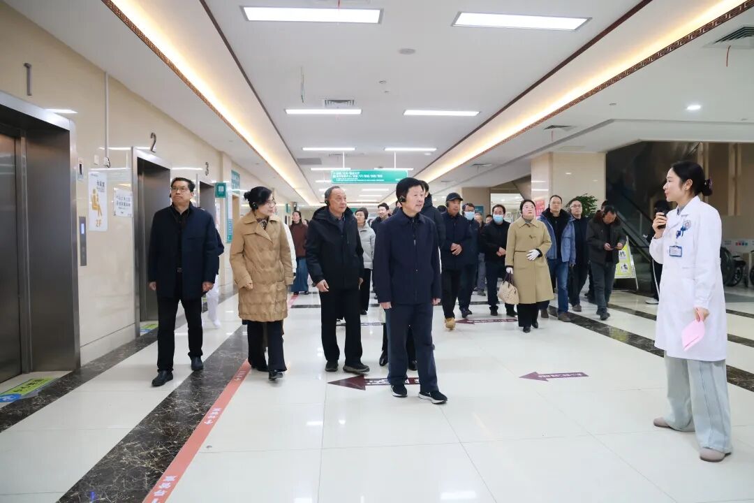 调研组一行首先深入泗县中医院门诊大厅、名医堂、转诊会诊中心、爱心厨房、智慧共享中药房、惠残儿童康复中心等重点科室,详细了解医院基础设施建设、中医药特色服务开展及学科建设情况。调研组对中医院在中医药服务模式创新、基层帮扶等方面的成效给予高度肯定,并建议进一步发挥县级中医院龙头作用,推动优质资源下沉乡镇卫生院。