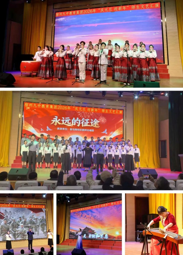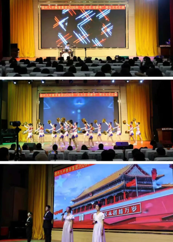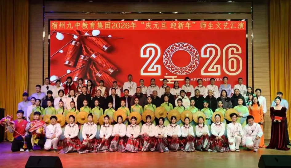 岁末的暖意氤氲在汴水之岸,艺术的星火点亮了高新校园。2025年12月30日下午,宿州九中教育集团迎元旦文艺汇演在高新校区报告厅精彩上演。集团各校区师生代表欢聚一堂,共同用笑语与歌声为2025年画上圆满句号,以最美的姿态迎接2026年的曙光。