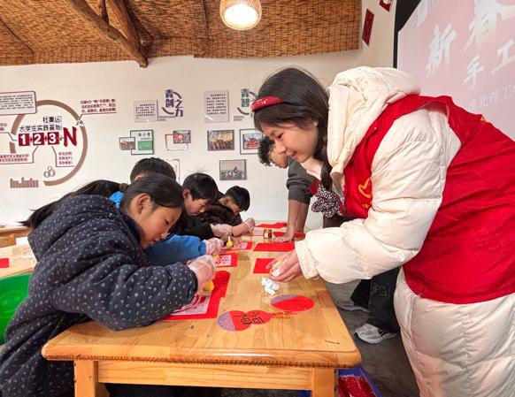 近日,淮北市杜集区石台镇梧桐村的寒假支教课堂暖意融融。淮北理工学院“红淮儿”支教社的志愿者们以“新春拓福”手工制作为核心内容,将非遗拓印技艺与新春祝福相结合,为当地孩子们带来了一堂趣味盎然、文化底蕴深厚的实践课,让这个冬日的乡村课堂充满年味与童趣。