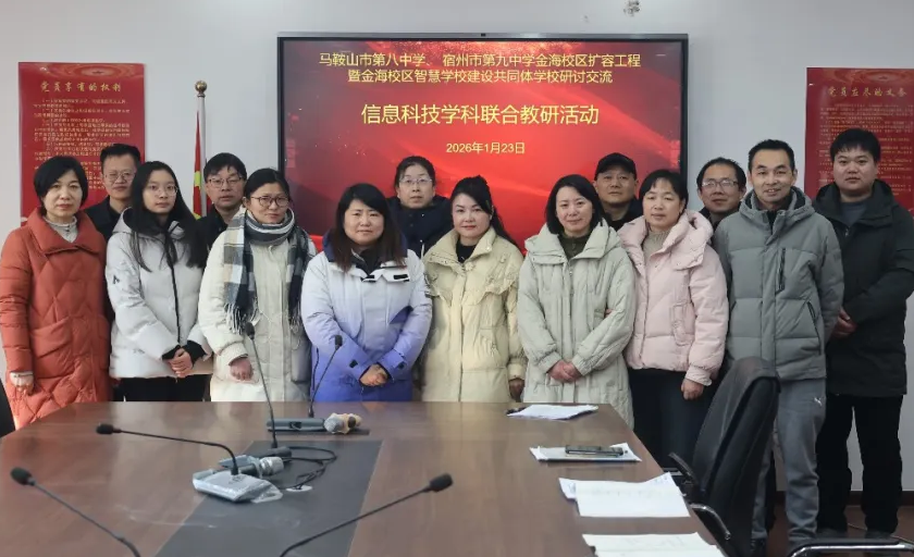 为实施皖北基础教育优质资源扩容工程,推动宿州九中金海校区智慧校园共同体学校工作进程,2026年1月22日至23日,马鞍山市第八中学与宿州九中教育集团暨九中金海校区智慧校园共同体学校共同举办工作交流、专题讲座、学科联合教研、省市级课题研讨等系列活动。