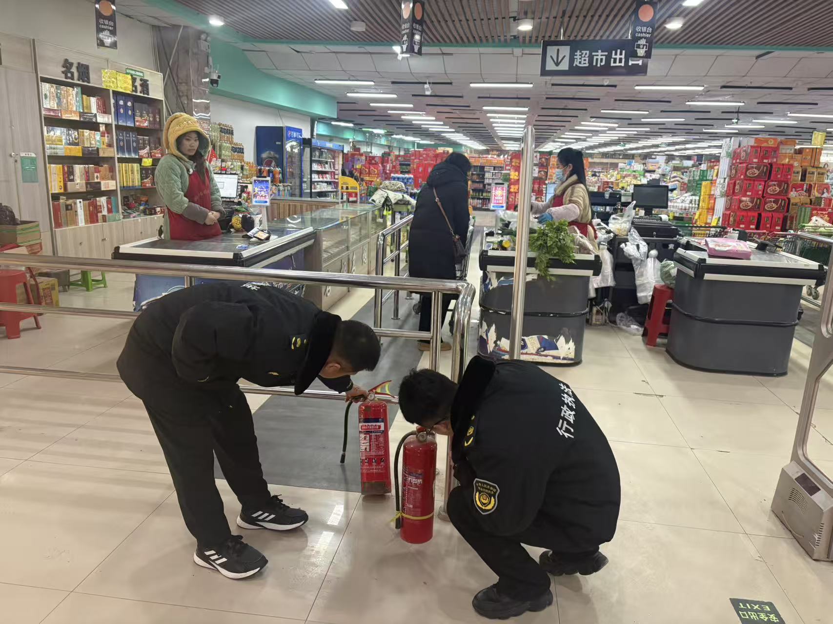 年关渐近,砀山县官庄坝镇官庄十字街超市等商铺人流渐密,消防安全风险随之攀升。为切实保障群众生命财产安全,营造平安祥和的节日氛围,官庄坝镇综合行政执法队联合镇应急消防部门,在全镇范围内开展超市、商铺消防安全专项检查与知识普及行动,以“排查+宣讲”双举措筑牢安全防线。