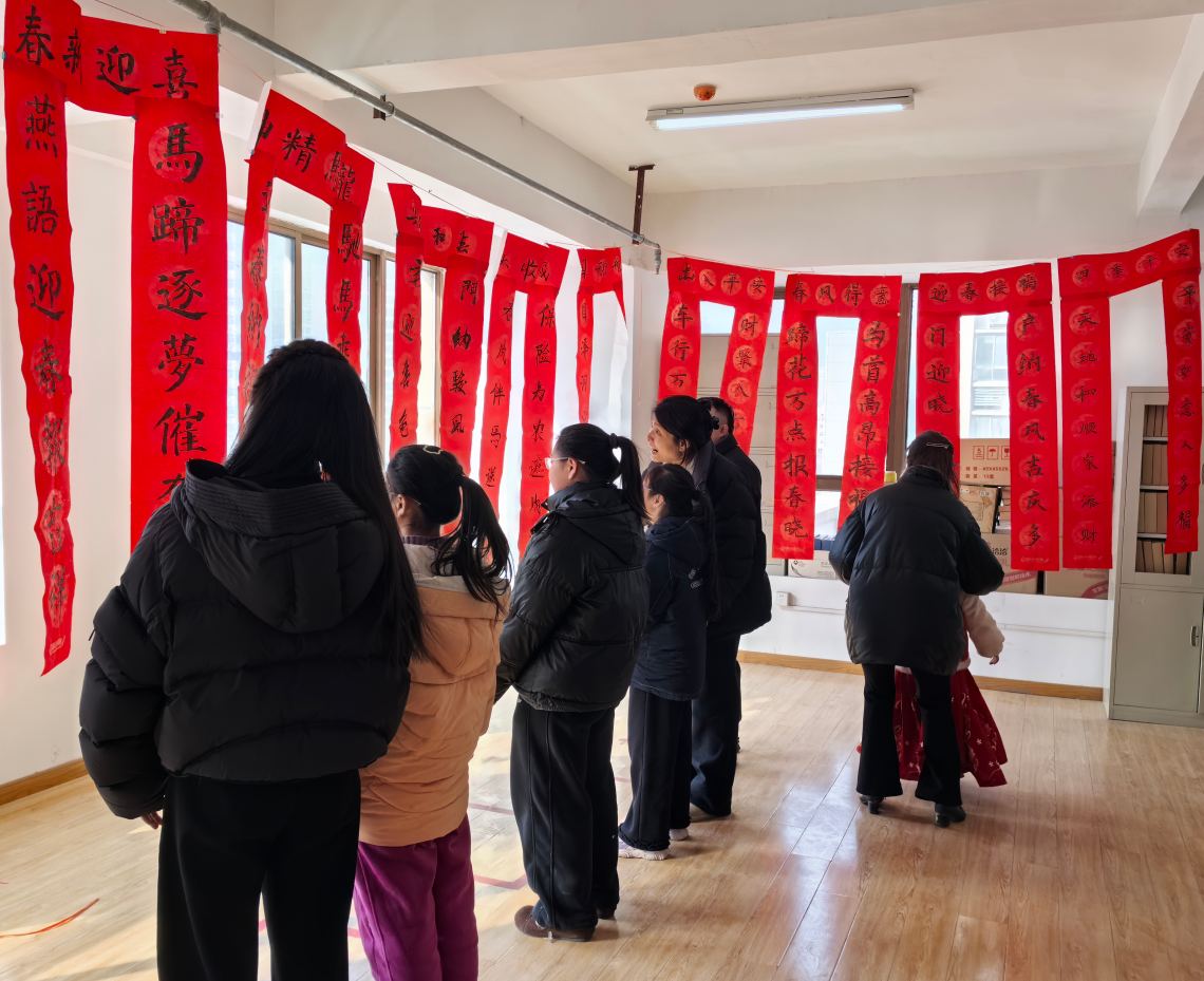 本次活动由工会小组联合党团支部精心策划,套圈、抢水瓶、蒙眼走直线、蒙眼吸水四大趣味项目依次开展,兼顾趣味性、互动性与参与性,为员工及子女打造了一场轻松愉悦的亲子欢乐盛宴,活动现场特别布置了由职工子女执笔书写的春联作品展区,一幅幅笔墨稚嫩确心意满满的春联整齐悬挂,红纸映墨香,年味扑面而来,为活动现场增添了一抹厚重又温馨的新春底色。