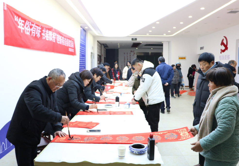 活动现场的另一侧,受邀而来的书法家们凝神静气、挥毫泼墨,一张张鲜艳的红纸在桌上铺开,蘸墨、运笔、落款一气呵成,笔锋或苍劲有力、或飘逸洒脱,一幅幅饱含马年期许的春联跃然纸上。市民读者们驻足观赏,一边欣赏书法创作的魅力,一边轻声交流,不少读者还主动等候,希望能求得一副专属的手写春联,将满满的年味与福气带回家,现场氛围温馨而热烈。