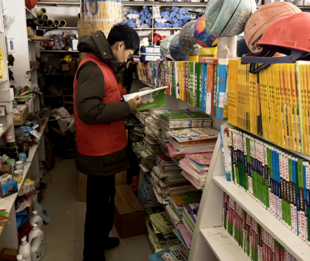 工作人员深入辖区内书店、文具店、音像店等重点场所,重点检查是否存在销售侵权盗版教材教辅、含有淫秽色情、暴力恐怖、封建迷信等内容的非法出版物,严防各类有害出版物和不良信息流入市场,从源头上净化校园周边文化环境。