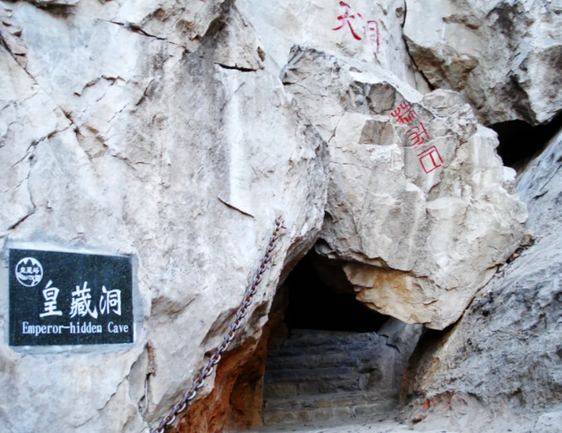 下午:皇藏峪+天门寺:抵达东门→乘观光车直达瑞云寺→拔剑泉→皇藏洞→瞭望塔→观景台→下山从东门前往天门寺→天门寺游览(古寺、晒书台、五蹬石门)→返回山脚,品尝皇藏峪蘑菇鸡