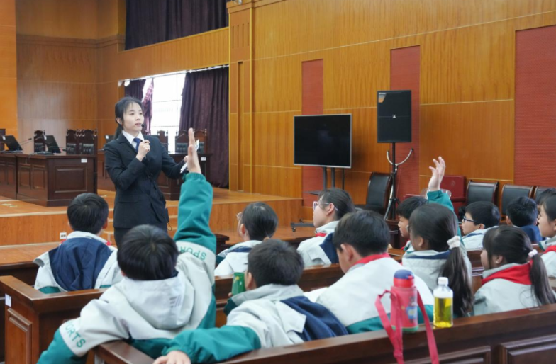 模拟法庭体验是本次活动的核心环节。少先队员们主动报名,分别扮演法官、检察官、律师、被告人等角色,在角色扮演中学会辨别是非,在案例分析中掌握法律知识。