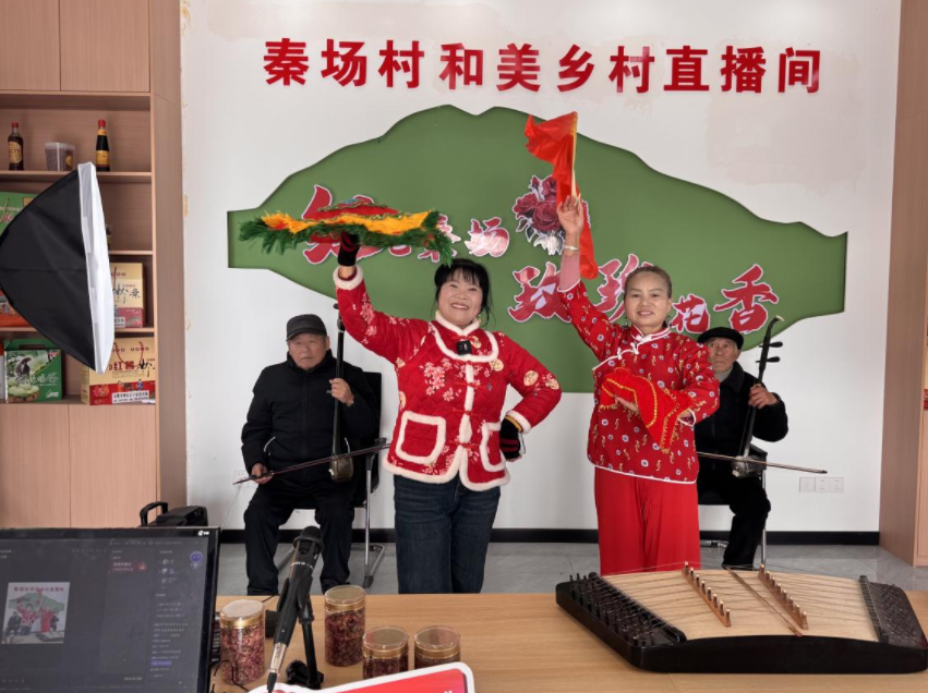 秦场村和美乡村直播间内开展文艺演出。王晨晨 摄