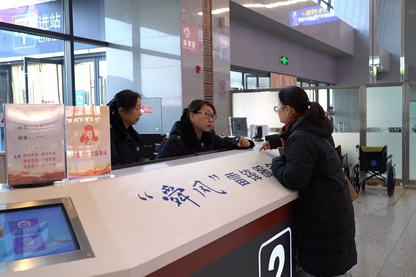 服务品质更温馨。淮南南、淮南、淮南东站在进站口设置爱心、急客通道,为老幼病残孕等重点旅客提供优先验证、优先安检服务。各客运车站进一步优化进出站流线,完善站台、通道静态标识,做好旅客进出站和乘降组织;对站内所有电茶炉进行水垢清洗,配备一次性茶杯,让候车旅客能够喝上放心水;对站内厕所等频繁使用的公共部位开展深度保洁清理,确保卫生条件良好。强化铁路与出租车、公交车等其他交通方式的信息共享及运力对接,做好便捷换乘和接续运输,畅通出行“最后一公里”,方便旅客中转换乘。招募120余名铁路志愿者,于春运期间在管内设置的30处志愿服务岗点,为旅客提供宣传引导、重点帮扶、出行咨询等服务。淮南东站在候车室内开设集淮南铁路发展历史、客运服务品牌展示、书香阅读、拍照打卡休闲为一体的综合服务区。淮南南、颍上站在候车室内设置“心愿墙”和“新年照相馆”,供广大旅客打卡留念。同时,各客运车站将充分发挥“舜”系列雷锋服务站作用,为旅客提供轮椅、小推车、担架、小药箱等以及推出行李防丢手牌、“五色爱心包”“换乘便利贴”“彩虹书签”、银发专窗等特色服务,满足不同旅客出行需求。