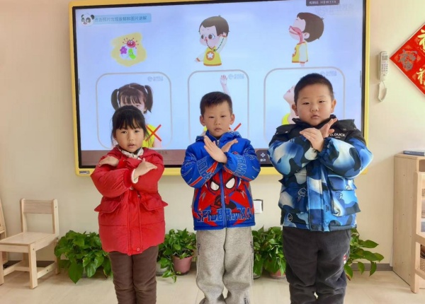 大班幼儿开展了护鼻主题教育活动。教师通过鼻腔结构图讲解鼻毛、黏液的保护作用,并结合生活场景讨论护鼻方法。实践环节中,幼儿参与“知识闯关”和“应急情景演练”,对照屏幕指引练习处理鼻子进异物、流鼻血等操作,部分幼儿主动演示,在互动中强化了护鼻责任意识。
