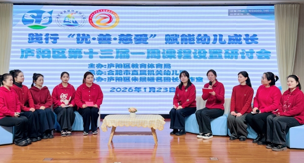 2026年1月23日上午,合肥市庐阳区第十三届“践行‘优 善 慈爱’ 赋能幼儿成长”一周课程设置研讨会圆满举行。本次活动由庐阳区教育体育局主办、合肥市直属机关幼儿园承办、庐阳区朱晨曦名园长工作室协办。来自全区各幼儿园园长、保教主任、教研组长及骨干教师150余人齐聚一堂。