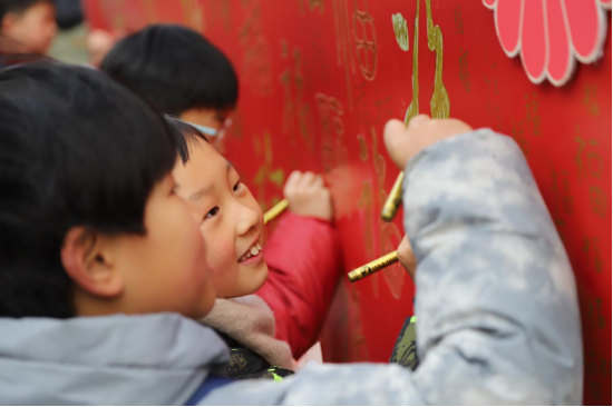 “春风猜谜·博闻强识”摊位前人头攒动,一张张谜面吸引着学生们驻足思考,大家摘下谜面后,纷纷前往“花神判官”处自信作答,答对的同学欣喜地收获第一枚“花神印章”,在猜谜中拓宽视野、博闻强识;“花笺绘图·墨韵迎新”摊位里,孩子们手执彩笔,认真为福字涂上缤纷色彩,一笔一划间寄托着对新学期的美好期许,完成绘画后,一枚枚印章如约而至,为孩子们的创作送上肯定;“花朝雅趣·投壶启智”摊位更是充满欢乐,学生们站在规定线外,凝神聚力、抬手投箭,每人三次机会,投中即通关,现场喝彩声、欢笑声此起彼伏,成功投中的学生拿着印章,脸上洋溢着胜利的笑容,在传统游戏中感受中华传统文化的魅力,锻炼手眼协调能力。