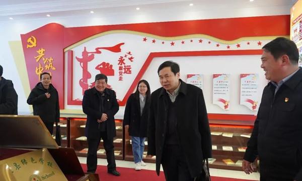 在汪毅的陪同讲解下,王俊文一行实地参观了学校的党性教育馆、名人文化园以及毛泽东像章陈列室等特色场馆,详细了解了学校在强化党建引领、深耕文化育人、打造德育品牌等方面的具体举措与阶段性成果。