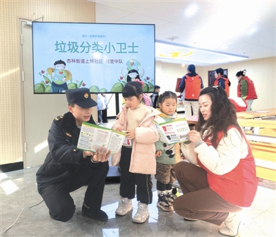 “小朋友们,快看这些垃圾,它们都迷路啦,谁能帮它们找到属于自己的‘家’呀?”在合肥市庐阳区上城国际幼儿园,杏林街道城管中队的队员们变身“环保老师”,用生动形象的语言将四分类标识特征娓娓道来。孩子们个个热情高涨,垃圾分类的理念如同种子一般,在他们纯真的心田里悄然落地生根。
