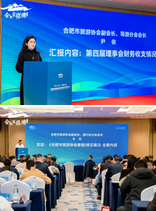 大会分两个阶段有序推进。第一阶段由第四届理事会秘书长朱善荣主持,与会代表集中听取了第五届会员代表大会筹备工作情况报告,观看了协会第四届理事会工作总结视频,审议并通过了第四届理事会工作报告及财务收支报告。会议表决通过了《合肥市旅游协会章程》修正案,选举产生了新一届理事会和监事会,张剑当选会长,吴胜、尹俊等当选副会长,朱智当选秘书长、邹玉敏当选监事长。