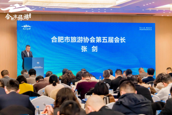 张剑在就职讲话中表示,合肥市旅游协会作为政企对接、行业联动的重要桥梁纽带,历届理事会在服务行业发展、反映企业诉求、促进行业自律等方面成效显著。新一届理事会将紧紧围绕市委、市政府战略部署,以服务会员、行业和政府为宗旨,重点推进以下四方面工作:一是强化桥梁纽带作用,搭建高效政企沟通平台,精准反映行业诉求,推动惠企政策落地见效。二是打造资源整合平台,深化“旅游+”融合发展,推动旅游与科技、文化、工业、农业、体育等产业联动,丰富合肥文旅的内涵与体验。三是树立创新服务标杆,通过行业培训、论坛研讨、市场对接等活动赋能会员,提升会员归属感与获得感。四是塑造“合肥旅游”品牌,讲好新时代合肥故事。整合宣传力量,线上线下协同推广,擦亮“大湖名城、创新高地”城市形象。