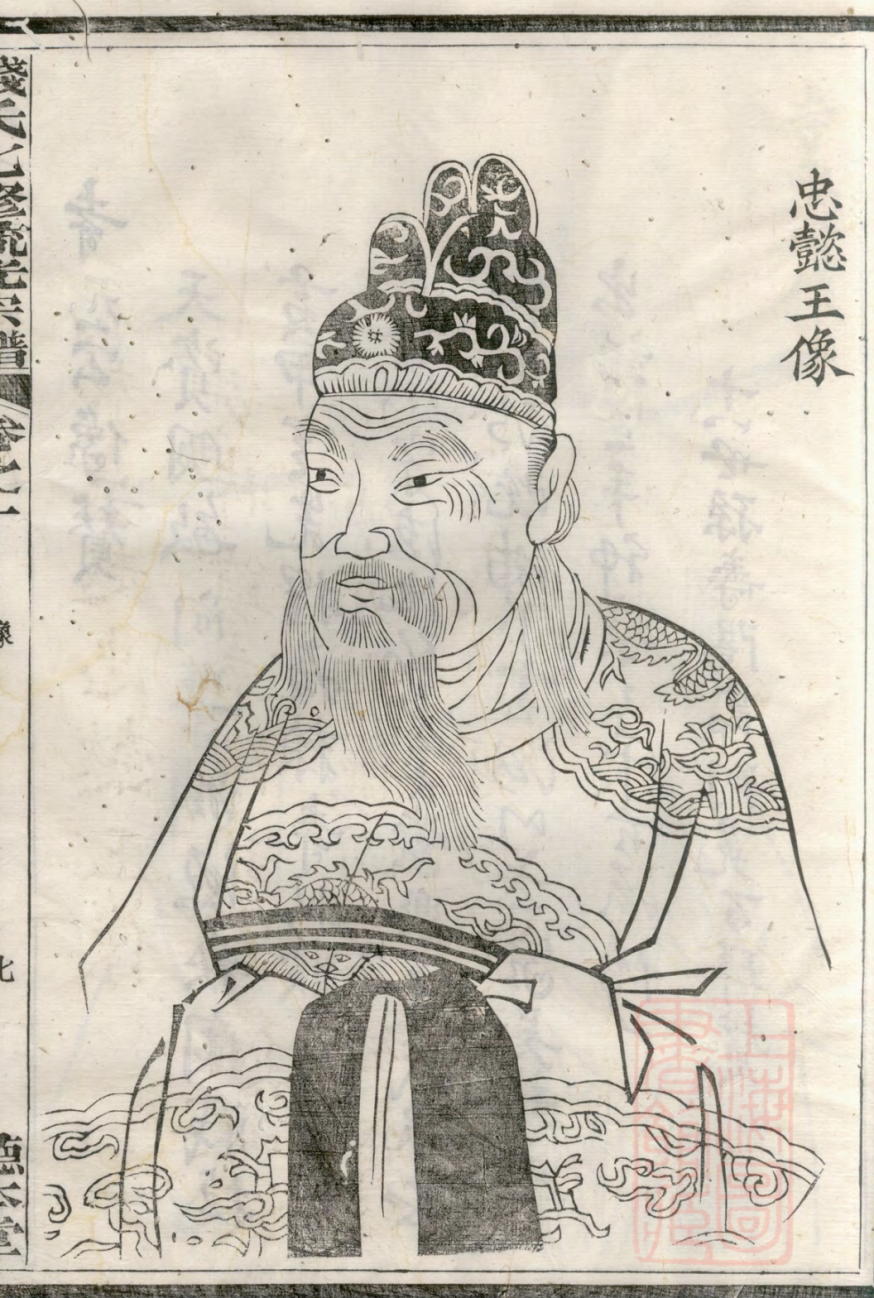 吴越忠懿王钱俶像。民国三年钱文德修《吴越钱氏七修流光宗谱》,上海图书馆藏