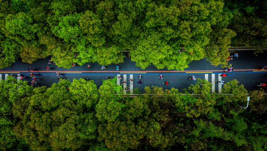 赛道森林覆盖率超96%,负氧离子充沛,全程微起伏、缓爬升,兼具竞技性与观赏性。
