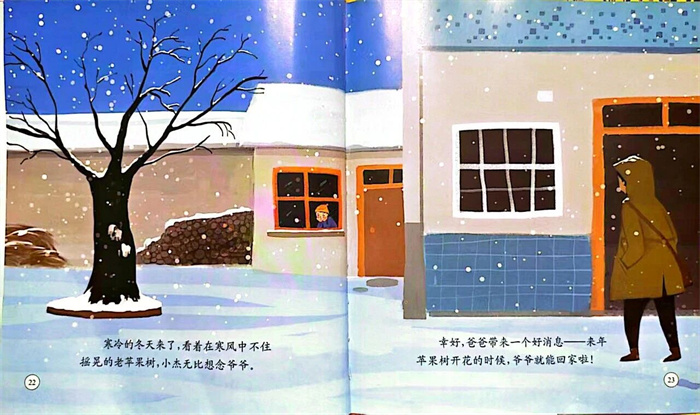 寒冷的冬天来了,看着在寒风中不住摇晃的老苹果树,小杰无比想念爷爷。