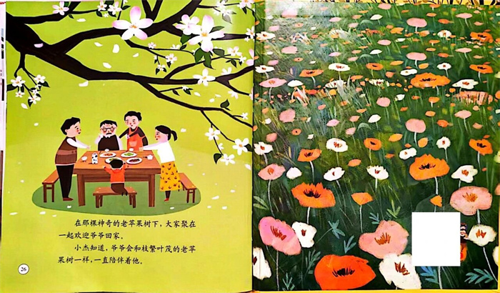 幸好,爸爸带来一个好消息——来年苹果树开花的时候,爷爷就能回家啦!