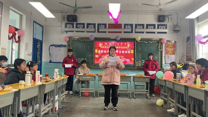 当日,各班教室早已被五彩气球、缤纷彩带装点得焕然一新,处处洋溢着喜庆祥和的节日氛围。联欢会上,节目形式多样、精彩纷呈。同学们或放声高歌,用嘹亮的歌声传递对新年的憧憬;或翩翩起舞,用灵动的舞姿展现少年的朝气;或表演小品、相声,诙谐幽默的台词引得全场捧腹大笑;还有的班级带来了诗朗诵、乐器演奏、书法等节目,字里行间、袅袅弦音,满是对祖国的热爱、对未来的期许。
