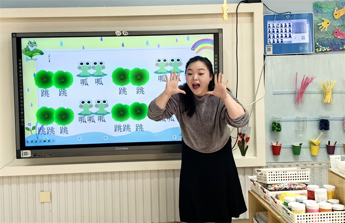 中一班黄景润妈妈化身“音乐老师”,带着经典曲目《小青蛙找家》走进课堂,为孩子们带来一堂沉浸式打击乐体验课。活动中,借助歌曲音频引导孩子感受节奏,又用生动动作讲解歌词意境,分发响板后借助节奏图谱带领孩子们敲击演奏,最后还布置“荷叶池塘”,让孩子戴着青蛙头饰踩着节奏跳跃游戏。孩子们在游戏中学到打击乐知识,在趣味满满的音乐互动中感受节奏之美。
