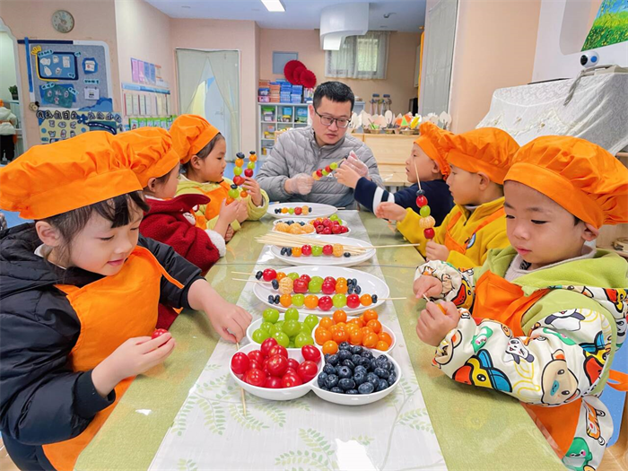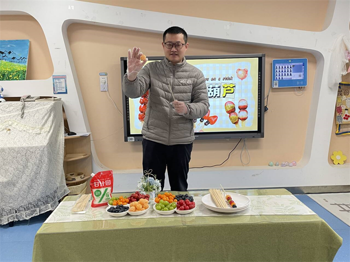 中二班杨子恩爸爸化身“美食老师”,带领孩子们开启冰糖葫芦甜蜜之旅。活动中,杨子恩爸爸用图片讲解冰糖葫芦的历史、选材与制作步骤,又示范串果、熬糖、裹糖衣的技巧,孩子们动手参与制作,活动室里满是欢声笑语。他们在动手实践中体验传统美食的制作乐趣,感受舌尖上的甜蜜。