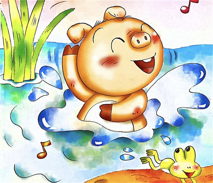 小猪滚啊滚,一不小心滚到池塘里去了。“救命啊!救命啊!”正当小猪努力要爬上岸的时候,突然觉得自己身上没那么痒了。