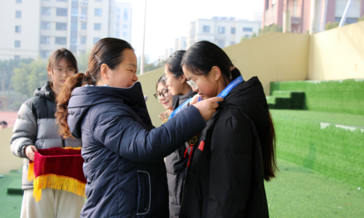 随后,体育组教研组长鲁甜甜老师为获得五六七名的学生进行颁奖,并与他们合影留念,定格这份努力换来的荣誉。