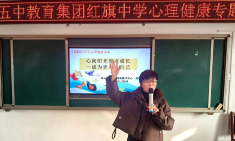 为加强学生心理健康教育,引导学生保持乐观积极的心态,近日,砀山县第五中学教育集团红旗中学举办以“心向阳光健康成长、遇见更好的自己”为主题的心理健康专题讲座,五中政教处副主任胡群老师主讲,帮助学生掌握情绪管理、压力应对等实用心理调适方法,促进学生身心健康发展。