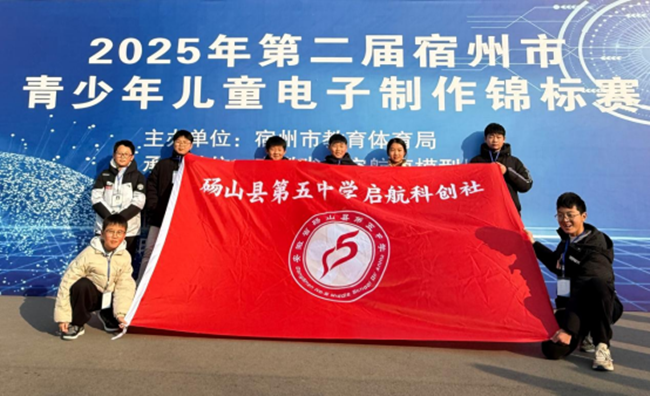 2025年12月27日,宿州市教育体育局主办2025年第二届宿州市青少年儿童电子制作锦标赛,砀山县第五中学学生在比赛中表现卓越,在电路创新设计与AI编程设计等项目中,个人与团体均取得优异成绩,展现出砀山五中在科技教育与创新实践方面的扎实成果。