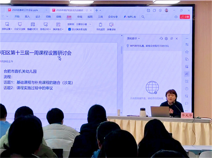 为进一步提升新时代基础教育教研水平,推动庐阳区学前教育教学研究工作深入发展,2026年1月9日上午,2026年庐阳区幼儿园教研工作会议在合肥市庐阳实验幼儿园教育集团红玺台总园召开,会议由庐阳区学前教研员毕大华主任主持,全区各幼儿园业务园长、保教主任共计五十余人参加此次会议。