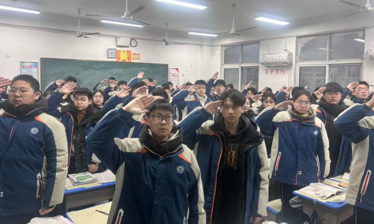 清晨,寒意阵阵,全校各班教室内秩序井然。伴随着雄壮激昂的《义勇军进行曲》,同学们整齐起立、庄严行队礼,注视着教室中的五星红旗,在庄严肃穆的氛围中,本次特殊的室内主题升旗仪式正式开启。