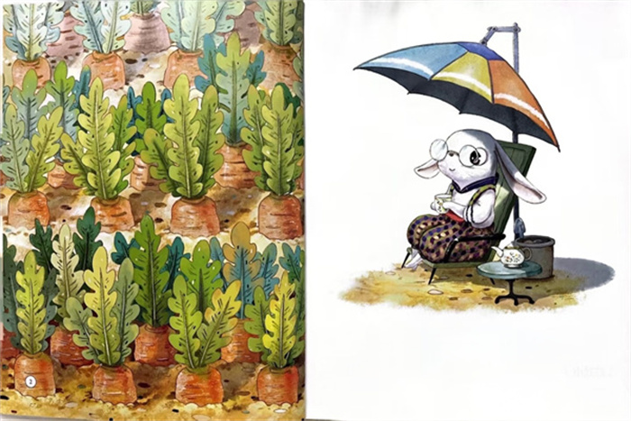 菜园子里种着清一色的胡萝卜。兔子先生非常喜欢这些胡萝卜,谁也别想动一动。