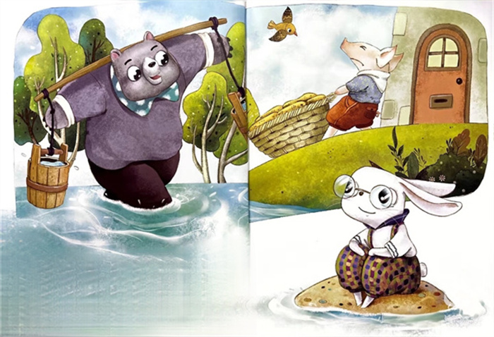 “兔子先生,你别哭了,我们一起帮你来重建菜园子。瞧,我的力气可大啦!” 灰灰熊拍了拍胸脯,安慰兔子先生。