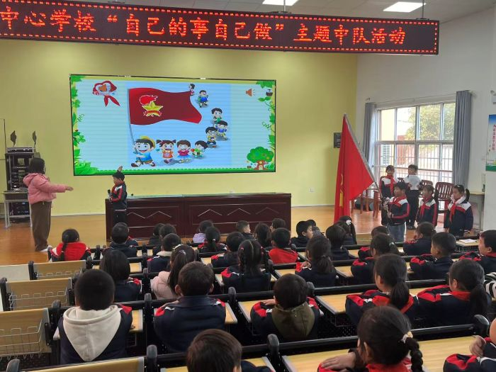 活动严格遵循少先队中队会仪式流程,整队报告人数、出旗敬礼、齐唱队歌等环节严谨有序,队员们在规范的仪式中展现出昂扬的队员风貌。主题活动环节则充满童趣与挑战,辅导员老师设计了一系列贴合低年级学生特点的实践游戏与竞赛:“劳动归归类”让队员们学会区分劳动任务,“行为对与错”引导队员懂得自主做事的行为准则,而系红领巾、系鞋带、整理书包的实操竞赛更是将活动推向高潮。