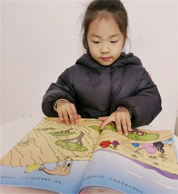 你喜欢看书,从小时候的撕不烂布书,到现在一本本充满画面的绘本,书好像是你睡前最亲密的伙伴。让我们惊讶的是,虽然你还不认识字,却能凭着记忆和想象,把看过的一些故事一页一页“读”出来,有时还像个小老师一样纠正我们的讲述。记得你为班里小朋友挑书时那认真的样子——低着头,一本一本轻轻翻,仿佛要把所有美好都分享出去。那样的你,真像一颗温柔的小种子,悄悄把阅读的快乐种在了更多人的心里。