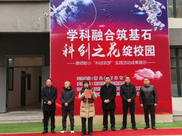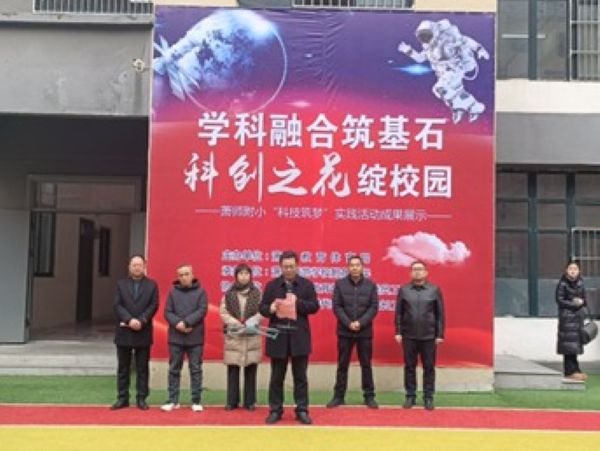 在随后的开幕式上,县政协副主席张艳为活动致开幕词,她充分肯定了学校在培养学生科学素养与创新能力方面的积极探索,并鼓励孩子们永葆好奇心,不断探索未知世界的奥秘。县教体局局长刘先峰在讲话中强调了科技教育在基础教育阶段的重要性,对学校以生动形式普及科技知识的做法表示赞许。萧师附小宋继昭校长代表学校致欢迎辞,他阐述了展览作品“主题契合、材料环保、原创自制、安全可靠”的核心理念,并感谢各方对学校教育工作的大力支持。