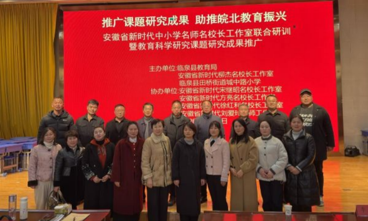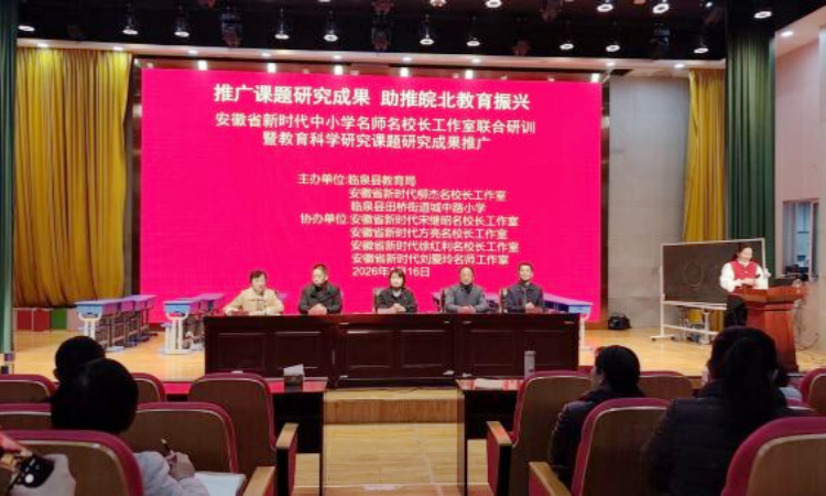 为充分发挥“双名计划”示范引领作用,推广优质教育科研成果,助推皖北教育高质量发展,2026年1月16日,安徽省新时代中小学名师名校长工作室联合研训暨教育科学研究课题成果推广活动在临泉县田桥街道城中路小学报告厅举行。