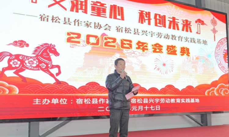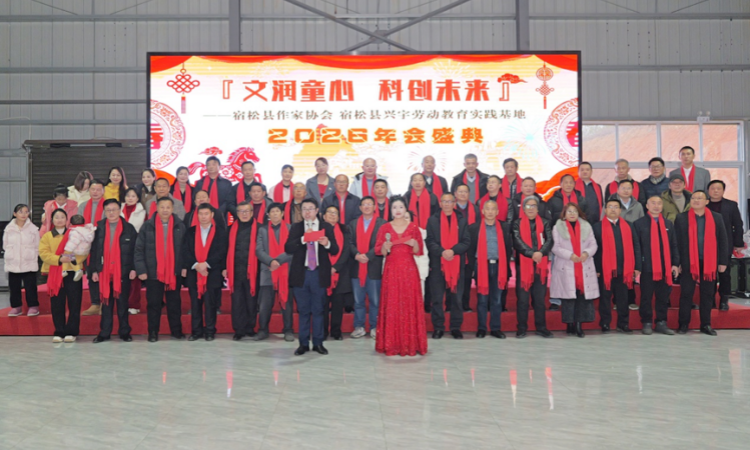 1月17日,宿松县作家协会联合宿松县兴宇劳动教育综合实践基地,以“文润童心科创未来”为主题,在兴宇劳动基地举办2026年会盛典。宿松县委组织部、县文明办、县科协、县文旅体局、县妇联、团县委、县文联、县司法局等单位相关负责人出席活动。