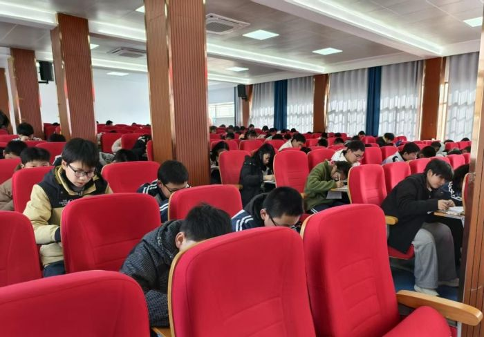 比赛尚未开始,多媒体教室内已座无虚席。同学们怀揣着饱满的热情与昂扬的斗志,提前整理文具、调整状态,眼神充满期待。随着主持人宣布比赛开始,现场瞬间进入“静音模式”,同学们迅速投入答题状态:有的低头凝神思索,笔尖在答题卡上快速游走;有的眉头微蹙,认真核对每个字母的拼写;有的胸有成竹,流畅书写各类词汇,充分展现出扎实的英语基础与良好的知识素养,整个赛场秩序井然。