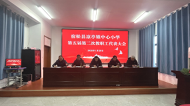 为深入贯彻2026年全国教育工作会议精神,凝聚全校教职工智慧与力量,1月20日下午,宿松县凉亭中小在新校区五楼报告厅召开教职工代表大会。本次会议由学校党支部委员、工会主席吴水荣主持,全体教职工代表出席会议。