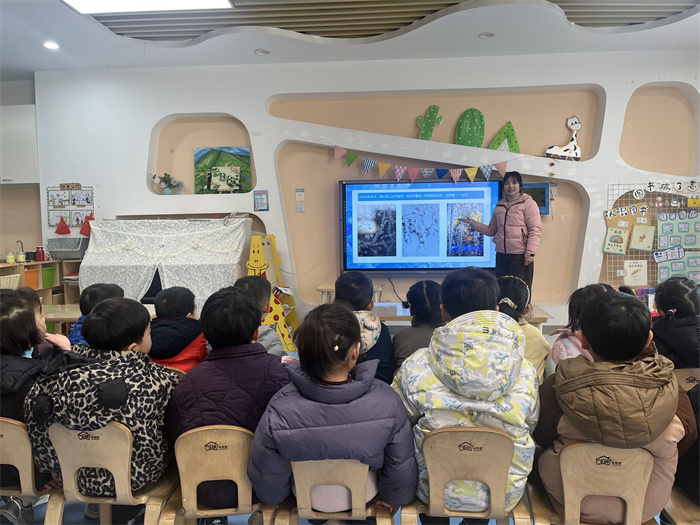 教师通过图片、视频引导幼儿了解水结成冰的原理,听完后孩子们有了制作冰花的想法,大家热情地讨论着并跃跃欲试。