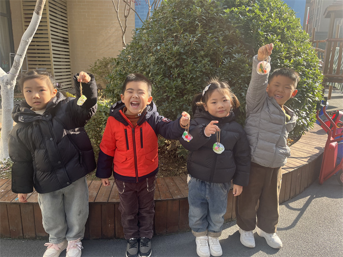 阳光一照,晶莹剔透,真是太美啦。让我们把它挂到树上吧!通过制作冰花,孩子们感受到冬季独有的美丽,也获得满满成就感。
